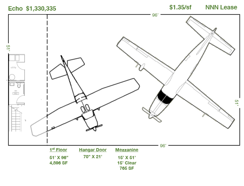 Lease: Hangar purchase too expensive? Consider leasing a unit – we offer lease rates starting at $1.35/sf NNN with rent incentives for long term leases 5+ years.